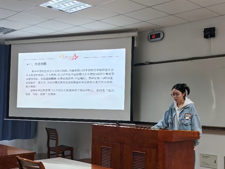 田雨欣带领大家一同回顾了过去五年学校在各领域取得的工作成就,深入领会六个规律性认识,深刻理解与时俱进内涵,从多个维度对厦门大学第十二次党代会精神进行了深入学习。希望全体支部党员能够牢记嘱托、勇担使命,为与时俱进建设世界一流大学,以中国式现代化全面推进中华民族伟大复兴作出新的更大贡献。