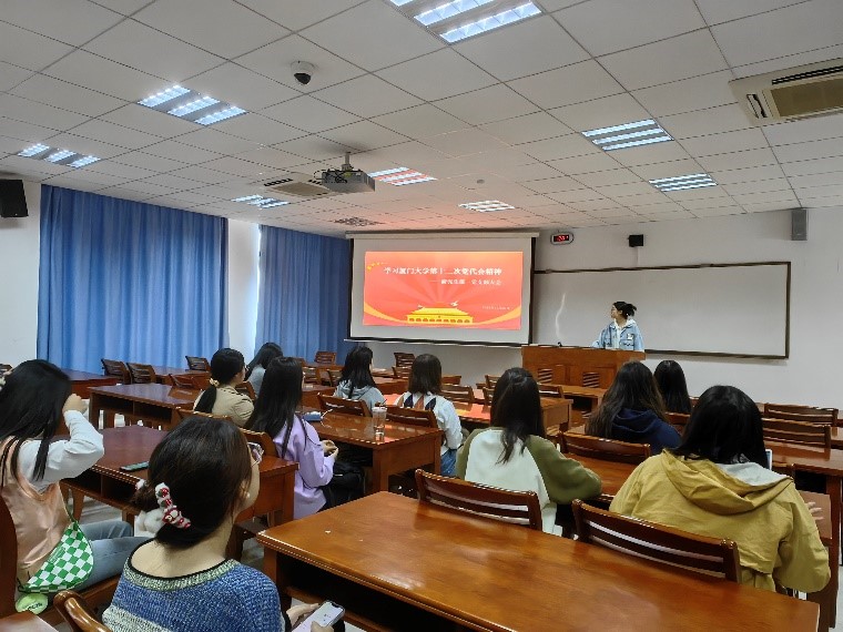 11月30日中午,国际中文教育学院/海外教育学院研究生第一党支部于翔安校区坤銮楼B211教室开展学习厦门大学第十二次党代会精神的主题党日活动。活动由研究生第一党支部书记田雨欣主持,支部全体党员参加。