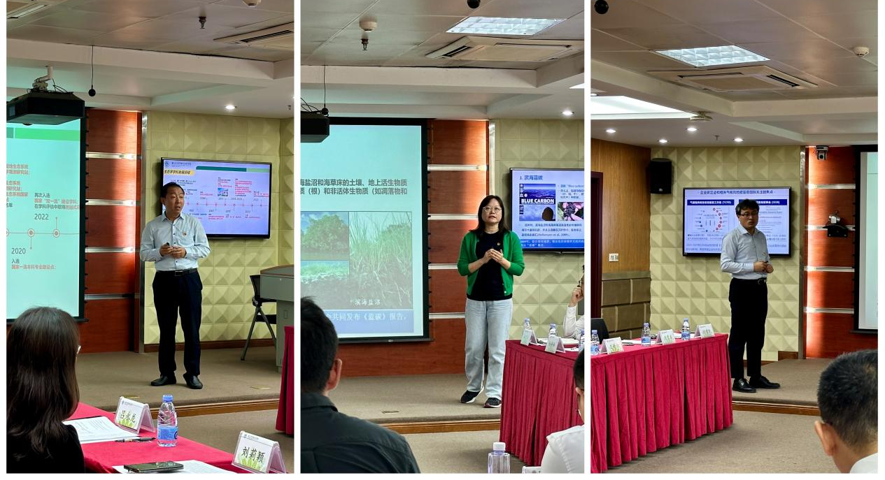 副院长黄凌风从学院成立的背景、办学理念、人才培养成果、教育改革实践等方面介绍了学院概况。陈鹭真教授和张增凯教授分别做了“蓝碳碳汇与蓝碳交易”和“企业碳足迹核算与应用”主题汇报。