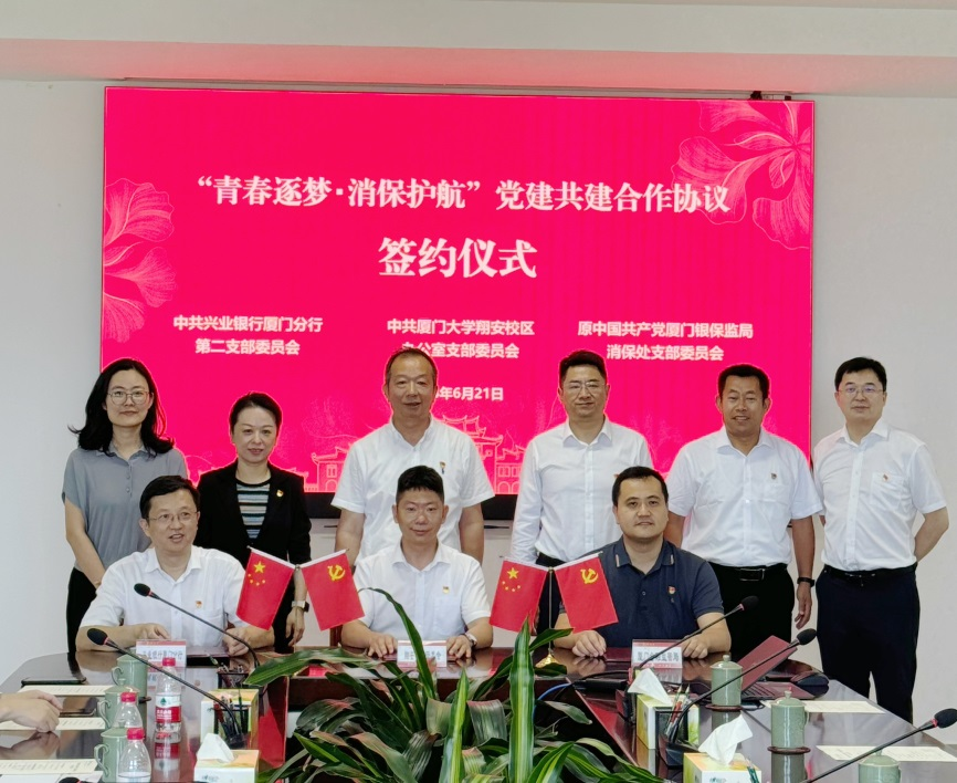 为深入学习贯彻党的二十大精神,推进党纪学习教育走深走实,探索多维共建的党建工作新模式,持续提升基层党组织党建质效,中共厦门大学翔安校区办公室支部委员会、原中国共产党厦门银保监局消保处支部委员会、中共兴业银行厦门分行第二支部委员会联合开展“青春逐梦・消保护航”党建共建活动。