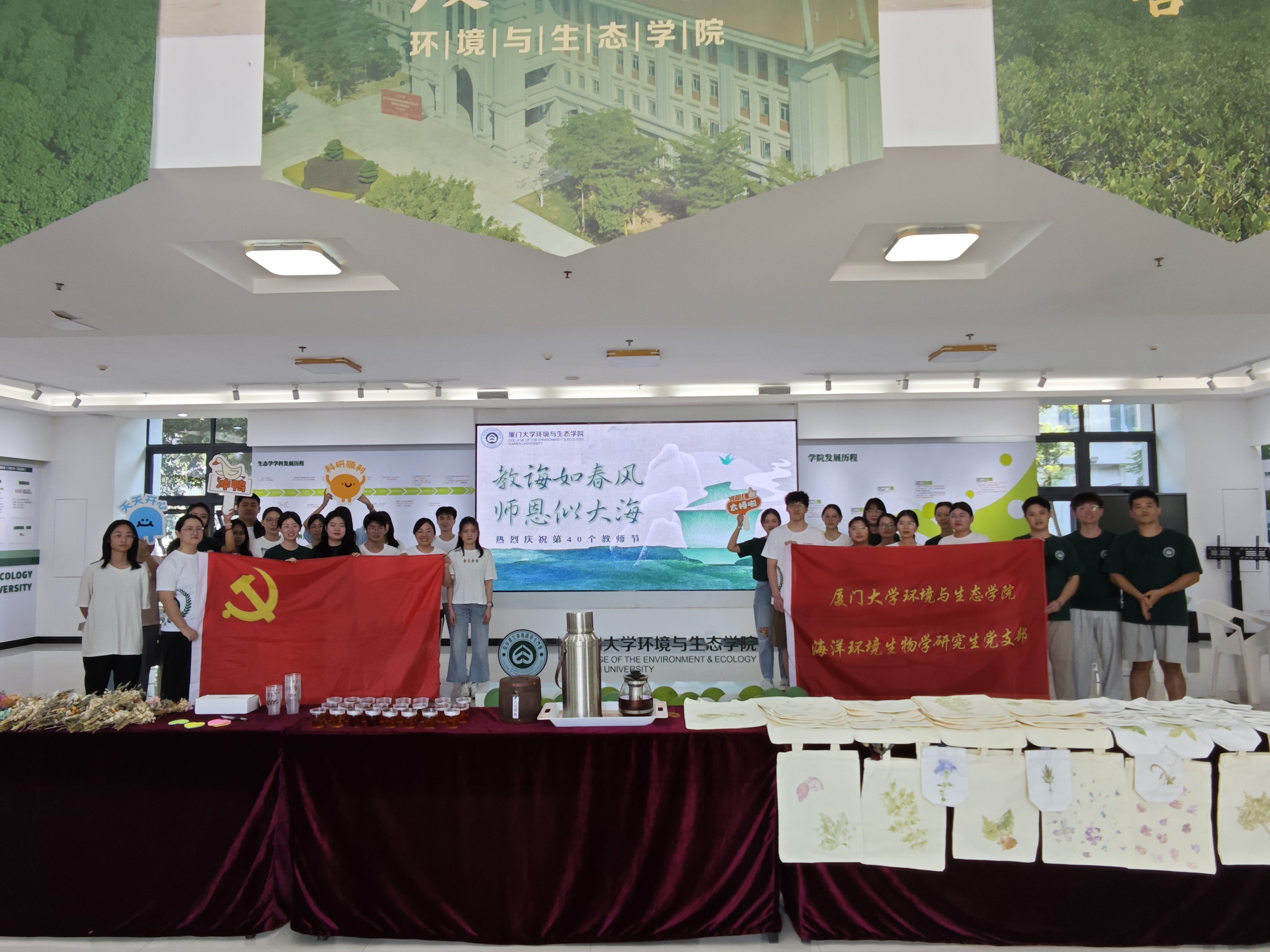 2024年9月10日是我国第40个教师节,也是环境与生态学院海洋环境生物学研究生党支部举办教师节活动的第5个年头,在学院党委的悉心指导下,支部在延续敬茶谢师恩及制作叶拓作品的特色内容基础上开展了主题为“一袋·一叶·一师恩”的党日活动,以此向老师们献上节日的祝福和深深的谢意。
