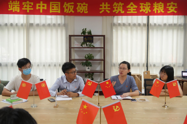 “端牢中国饭碗 共筑全球粮安”。15日13时,一场内容丰富、形式多样的“粮食安全”主题教育宣传党团日活动在生命科学学院一站式学生社区顺利开展。活动由生命科学学院植物2班研究生党支部和2019级本科4班团支部联合举办。生命科学学院遗传与发育生物学系主任、生物学系党支部书记黄烯教授、生命科学学院团委书记龚树丰等一同参加了本次党团日活动。