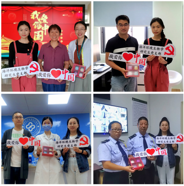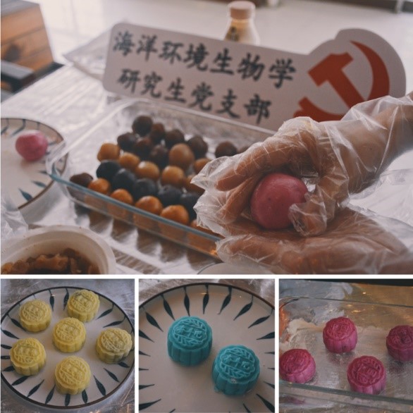 国庆中秋“双节”之际,环境与生态学院海洋环境生物学研究生党支部开展“花好月圆又一季,青年爱国正当时”主题党日活动,制作印有“我爱 你中国”“奋斗吧 青春”等字样的月饼,用这种别样的方式以青春致敬祖国,向祖国深情表白!