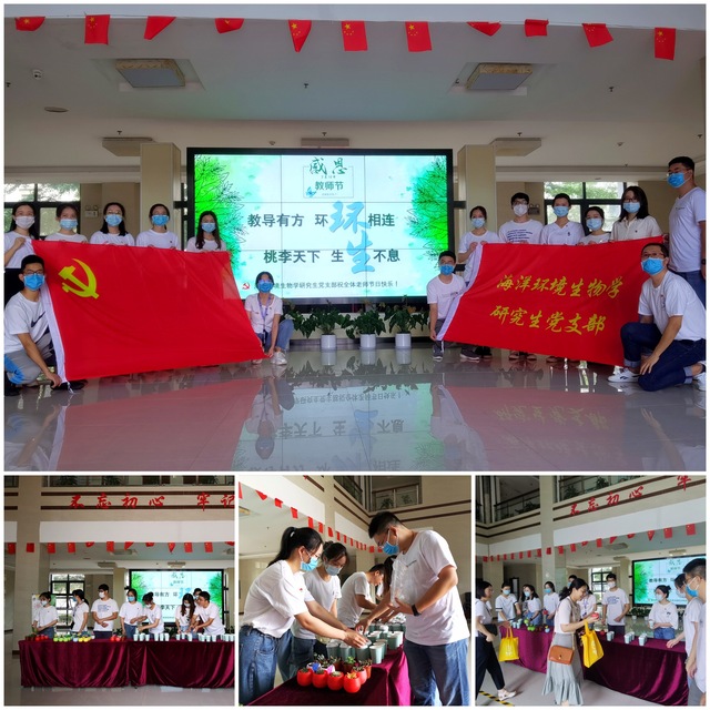 尊师重教是中华民族的传统美德。值此第36个教师节来临之际,环境与生态学院海洋环境生物学党支部在学院党委指导下,秉承传统文化,开展“桃李满天下,难忘师恩情”主题党日活动。活动紧扣“尊敬、感恩”主题,并结合专业特色,弘扬尊师重教良好风尚,表达对老师们的感恩之情。