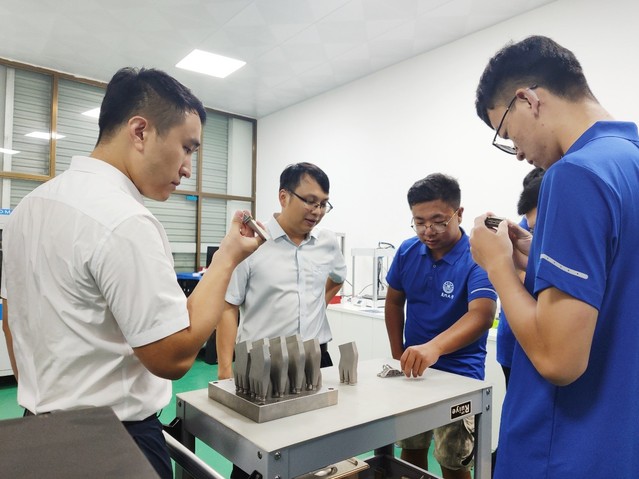 在广西机械工业研究院,实践队员们在一线科研人员的指导下,体验了3D光固化打印和金属打印机实验,动手操作3D打印机,通过切身参与生产一线工作、学习一线生产任务,将课堂所学理论知识与实际操作相结合,深化了劳动观念、培养了劳动意识、增强了劳动创新能力。