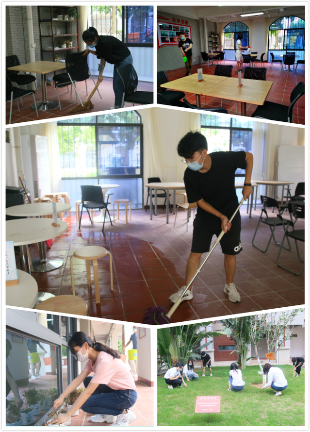 “习近平总书记反复强调年轻人要‘自找苦吃’,希望党员同志能带头吃苦,带头劳动,在日后的学习生活中再创佳绩” 听完同学们的发言,葛郝锐总结道。党课结束后,党建指导教师、劳动指导员与党支部全体到场同志拿起扫把、拖把、水桶、抹布等劳动工具,开始了热火朝天的“一站式”学生社区大清扫工作。14间房间、680平米大小、几个月被封闭,没有让参与劳动实践的师生们打退堂鼓,经过了2个小时打扫,整个“一站式”学生社区焕然一新。因疫情原因,许多盆栽无法及时养护,同学们充分发挥自己的生物专业特长,通过移栽、分株等方式,将大半绿植救活并重新装点于社区的各个角落。主要负责“一站式”学生社区绿植装点的魏雅婷同学说:“看到自己将课上课下学到的知识用在了生活中,倍感高兴!”。“一站式”学生社区大清扫即是一场别开生面的劳动教育,也是一次志愿服务。完成劳动后,已经满身是汗的吴帛轩同学说:“我们是看着‘一站式’学生社区从无到有的,虽然我们即将毕业了,可能不会再到里面学习,但是能为后面回来的学弟学妹们提供更加温馨、整洁的学习生活环境,就是我们‘为人民服务’的初心。”