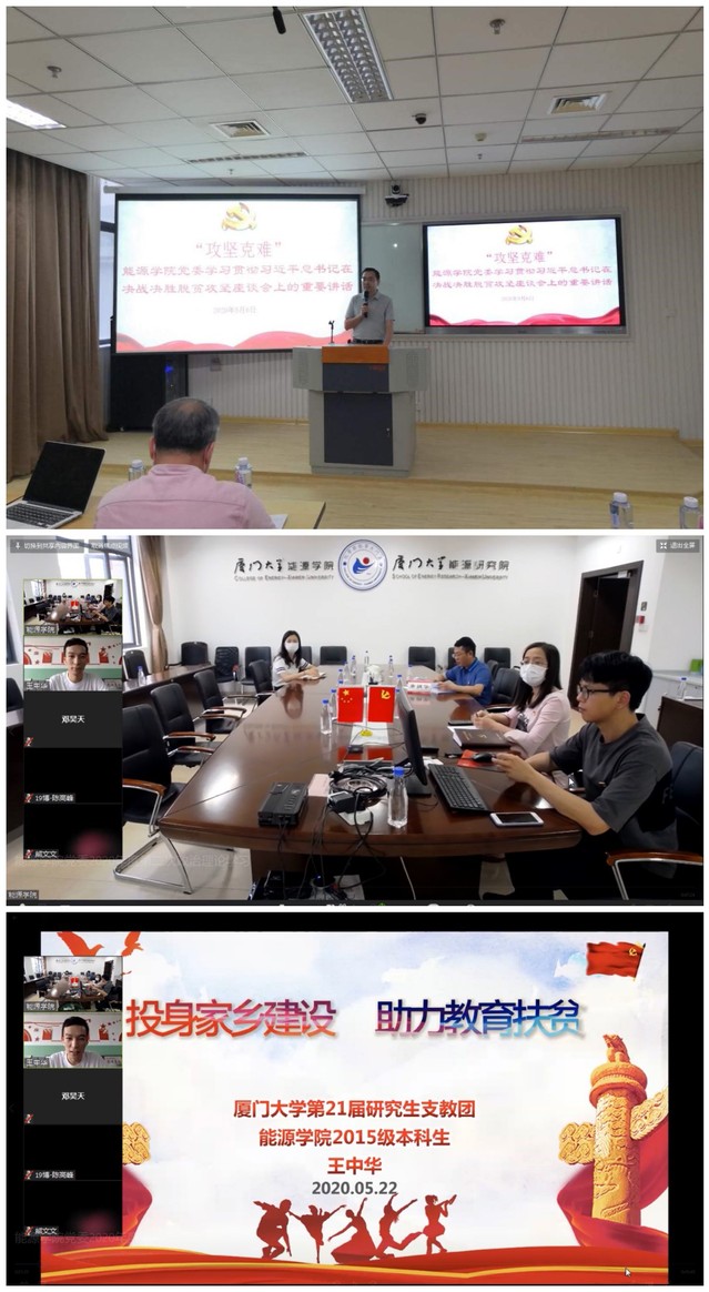 “精准扶贫,教育先行。让贫困地区的孩子们接受良好教育,是阻断贫困代际传递的重要途径”“听了王中华同学的分享,作为厦大学生,更是要积极参与、深度实践,把论文写在大地上,把研究成果应用到扶贫工作中。”能源学子们在参加完以学习习近平总书记在决战决胜脱贫攻坚座谈会上的重要讲话精神为主题的政治理论学习后,纷纷在直播软件中留言。
