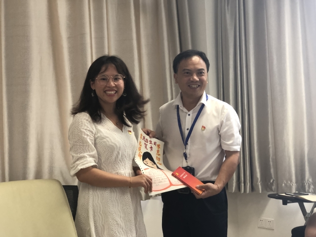 学院党委张建安书记为李文岗、毛雅婷两位同志赠送了手绘的政治生日贺卡及书籍,贺卡上记载着党员的入党时间和党龄。两位同志先后分享了自己的入党故事,表示特别的“政治生日会”令人难忘,政治生日贺卡既是提醒也是鞭策,激励自己时刻牢记党员身份,牢记共产党人的责任和使命。