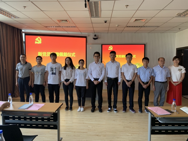 鲜红的党旗下,学院党委书记孙梓光、副书记孙佳为20187月以来发展的新党员代表佩戴党员徽章;随后全体师生党员面向党旗,举起右拳,庄严宣誓!