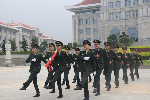 7时整,全场肃立,翔安校区国旗班的国防生们军容整肃,精神抖擞,迈着矫健的步伐,护送国旗走向升旗台。伴随着庄严的国歌声,鲜艳的五星红旗迎着朝阳冉冉升起、迎风飘扬,现场师生列队整齐,向国旗行注目礼。