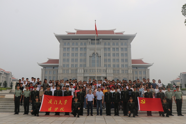 为庆祝中国共产党成立97周年,7月1日清晨,医学院举行升国旗和新党员入党宣誓仪式。医学院在翔安校区党支部成员、入党积极分子、学生会团总支骨干共100多人参加了仪式。