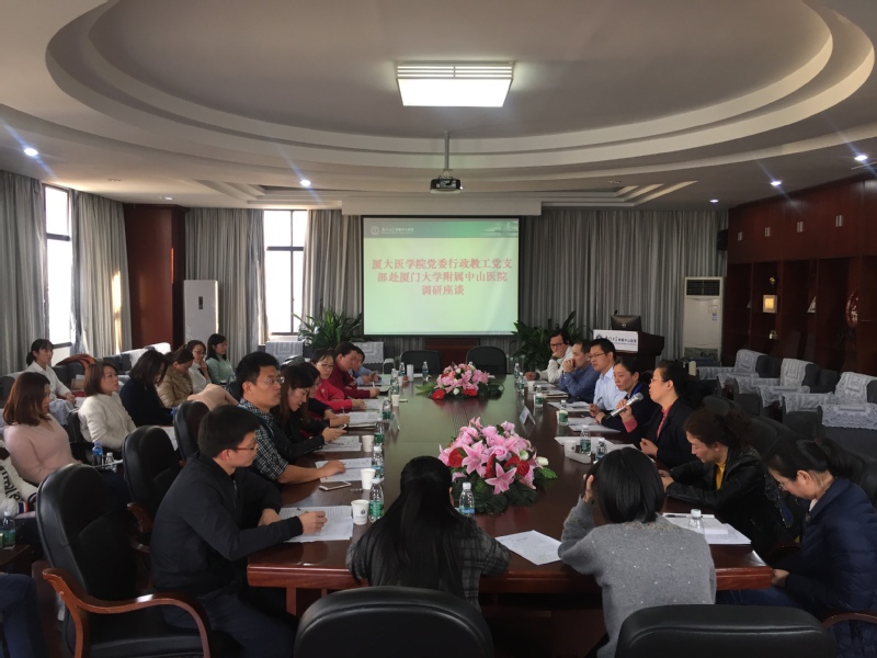 为深入学习贯彻党的十九大精神,推进“两学一做”制度化常态化,12月22日下午,厦门大学医学院行政教工党支部全体成员前往附属中山医院,开展内容为“加强与附属医院沟通,理顺医学教育管理模式”的校级支部立项活动第二场,附属中山医院党群办公室、行政办公室、本科教学办、科教科、人事科、科研部、医务处、护理部等部门代表参与了座谈。