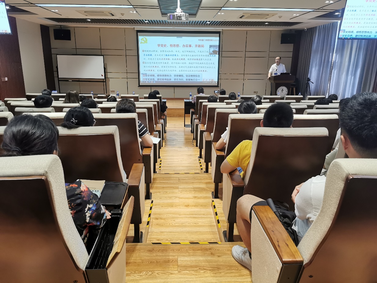 为深入学习贯彻习近平新时代中国特色社会主义思想,从党的百年伟大奋斗历程中汲取继续前进的智慧和力量,5月28日上午,医学与生命科学学部于成义楼102报告厅开展党史学习教育专题辅导报告会。本次报告会邀请了厦门市委党校党史党建教研部主任牛君教授,报告主题为《百年风雨话沧桑——中国共产党百年奋斗历程与启示》。医学院、生命科学学院、公共卫生学院、翔安医院党政班子成员和师生支部书记参与本次报告会。报告开设线上同步直播,师生党员线上参会。会议由医学院党委副书记何丽苹主持。