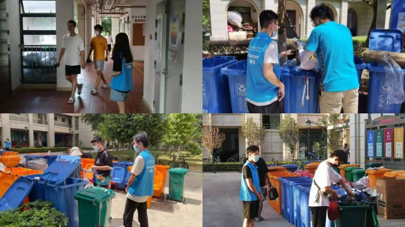 突击队党员配合后勤物业人员引导同学们落实正确垃圾分类等绿色行动,监督佩戴口罩、保持间距、杜绝聚集、减少外出、宿舍卫生等健康行为,对较长时间外出或晚归同学予以积极劝导。党员们克服天气炎热、工作时间长等困难,采用轮值制,确保全程管理服务。
