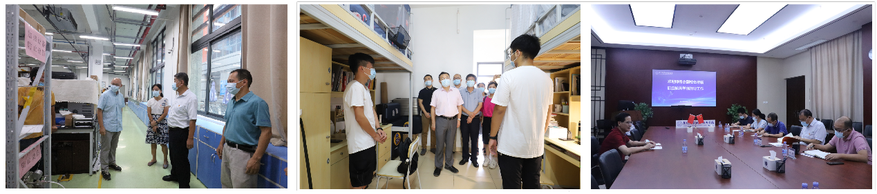9月16日下午,张荣校长、校党委徐进功副书记、陈光校长助理等一行来到学院映雪学生社区指导疫情防控工作。张荣校长一行就园区公共设施运行情况进行检查,并走访学生宿舍、与同学们亲切交流。同学们就防疫期间的学习、生活情况进行汇报,反映存在的困难和问题,张荣校长给予细致关心与耐心解答,并要求有关职能部门、学院抓紧抓好各项措施,全力确保疫情防控成效、保障正常教学生活秩序。