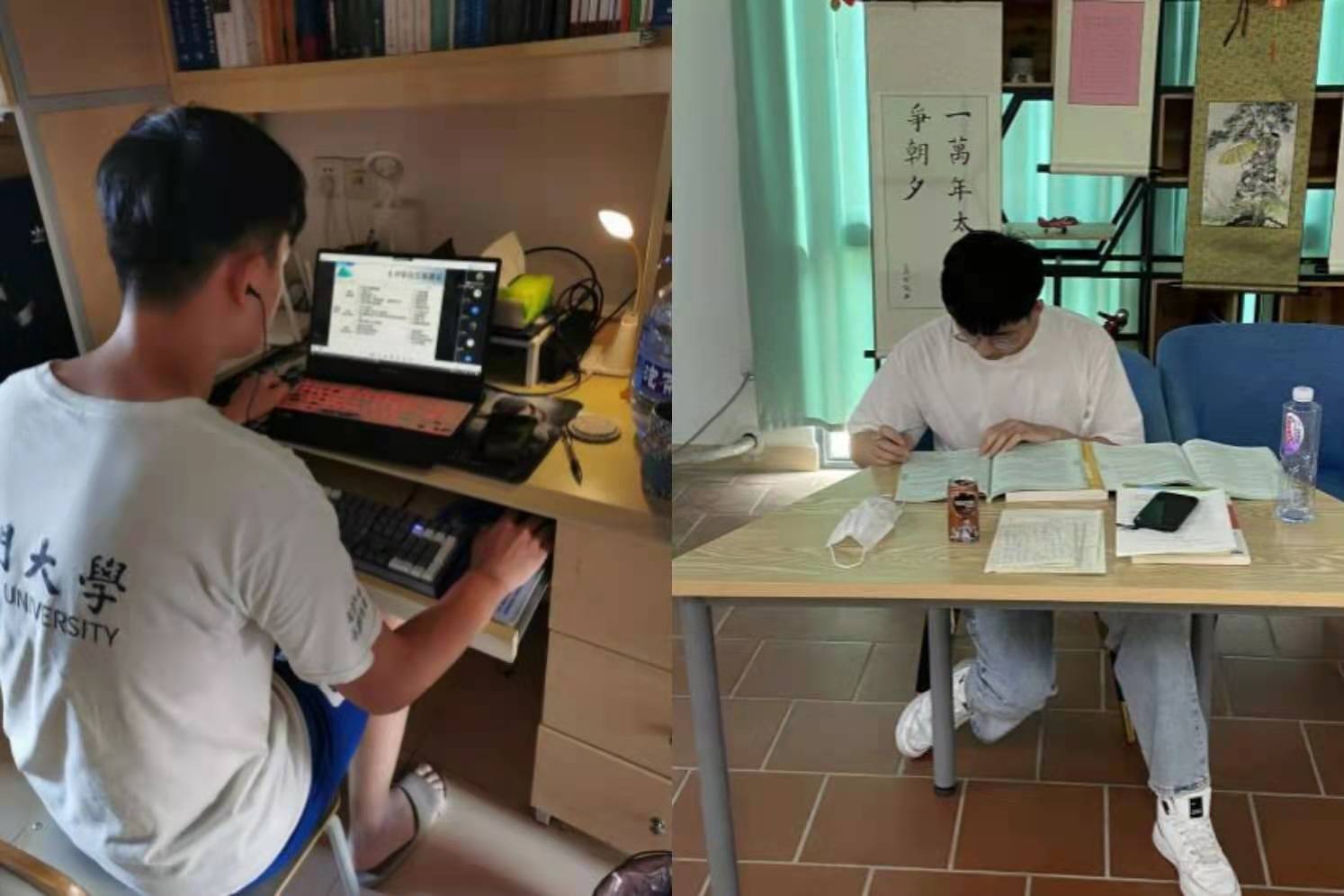 学生在宿舍认真上网课 学生在社区“一站式”空间学习