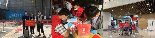 当天,负责接站的师生志愿者们迎着清晨的第一缕阳光分赴各自工作岗位。他们在厦门北站、厦门机场T3、T4航站楼等地,建好学院接站“营地”,让返校的药学学子一出车站和机场,就能看到熟悉的药学师生的身影,体验“回家”的幸福。返校学生通过体温测量、身份信息核验、专属健康标签领取等程序后,顺利坐上抵达翔安校区的校车……