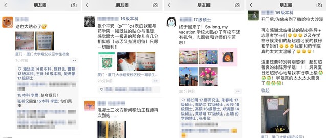 和她一样,学生们对学校和学院的感激之情溢于言表,有些在朋友圈晒图秀收到的温馨礼包,有些在微博分享感动自己的点滴细节,有些私信老师诉说感恩的“悄悄话”……