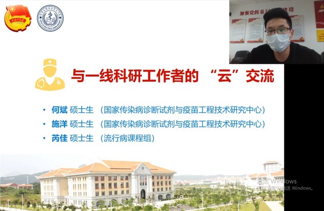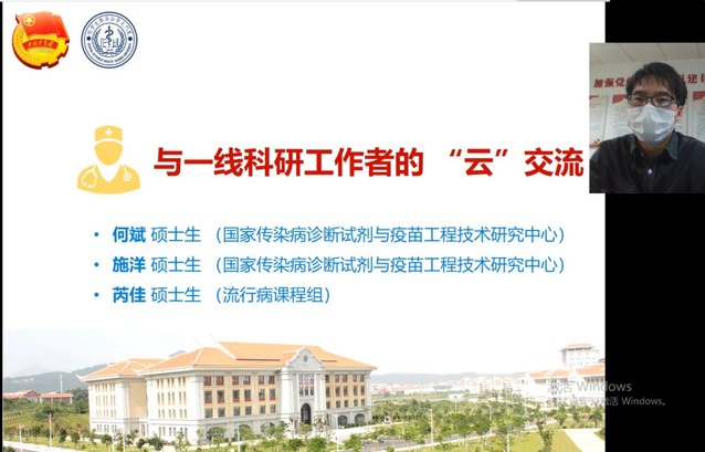 2017级硕士研究生何斌在交流中提到,疫情暴发后,国家传染病诊断试剂与疫苗工程技术研究中心师生自觉放弃假期,早早“请战”返校开展应急攻关任务。大家团结一心,为了战胜疫情,24小时一刻不停与病毒赛跑,最终研发出灵敏度高、随到随检的新冠病毒诊断试剂盒。在进行血清检测时,为尽快得到结果,他和小伙伴们每晚通宵工作,早上回去稍微休息下便继续开展新的工作,三天一共睡了四五个小时,脱下防护服的那一刻,全身都湿了,感觉体力已经透支到了极限。他与大家共勉勇于担当重任,做个有知识、有能力,为国家做贡献的公卫人。