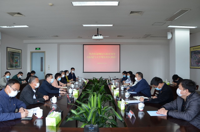 3月3日上午,翔安区区长胡盛、副区长程明带队到校区考察调研校区疫情防控、复工复学、校地合作等工作。校长助理、翔安校区党工委书记、管委会主任陈光,翔安校区党工委副书记、管委会副主任黄宇霞出席会议并交流校区有关工作。