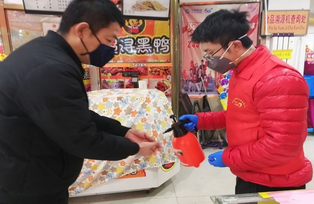 (唐新龙在超市消毒)