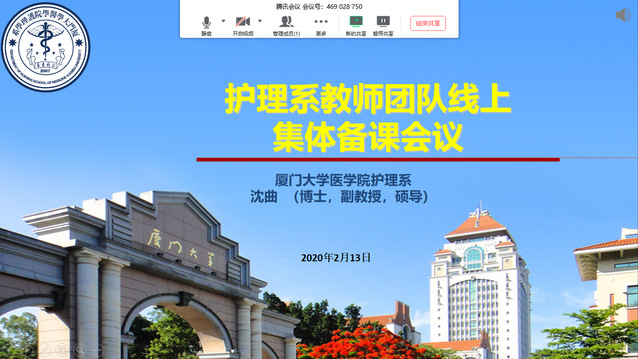 为贯彻落实习近平总书记关于坚决打赢疫情防控阻击战的重要指示精神,按照学校2019-2020学年第二学期疫情防控期间本科教学工作方案的总体安排,为确保疫情结束之前“停课不停教、不停学”,全面做好正式开学前组织开展线上教学工作,护理系教工党支部牵头于2020年2月13日晚上8点线上召开了护理系2020年春季学期关于线上教学专题会议,在组织和保障教学运行中发挥战斗堡垒作用。会议由护理系支部书记沈曲老师主持,护理系全体教师、各课程组组长和任课教师参加了此次线上会议。