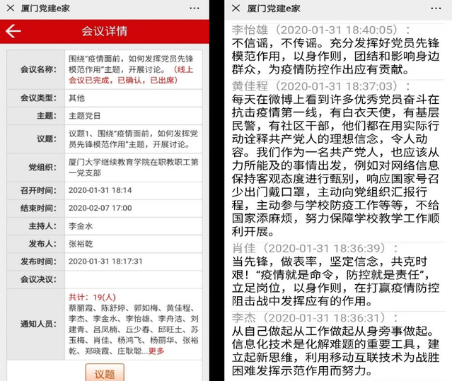 重引导。学院各党支部在党总支的指导下也充分发挥好战斗堡垒作用,积极运用厦门党建e家、学习强国等平台组织学院党员开展各类学习,并组织如“疫情面前,如何发挥党员先锋模范作用”等主题活动,鼓励支部党员通过树信心、表决心,切实增强“四个意识”,坚定“四个自信”,做到“两个维护”,不断加深对初心和使命的认识,让党旗在防控疫情斗争第一线高高飘扬。