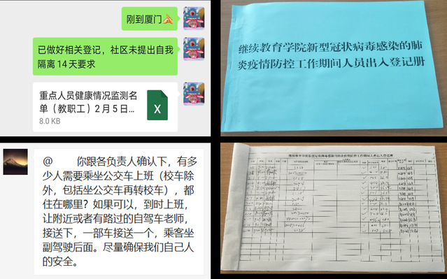 1.密切掌握每位教职工返厦行程、了解他们在社区的登记情况;