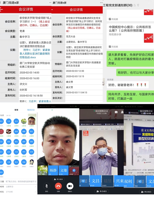 各师生党支部还结合学院党委发布的10本推荐书目(思想政治理论书目6本、防疫思维引导书目4本)和相关资料开展线上读书会,自动化教工党支部专题学习研讨习近平总书记关于“紧紧依靠人民群众坚决打赢疫情防控阻击战”的重要指示精神,飞动机械本科生党支部在线上学习《见证初心和使命的“南强红笺”》,并将理论结合实际,讨论如何坚守初心使命,在抗击疫情过程中发挥党员的先锋模范与示范表率作用。