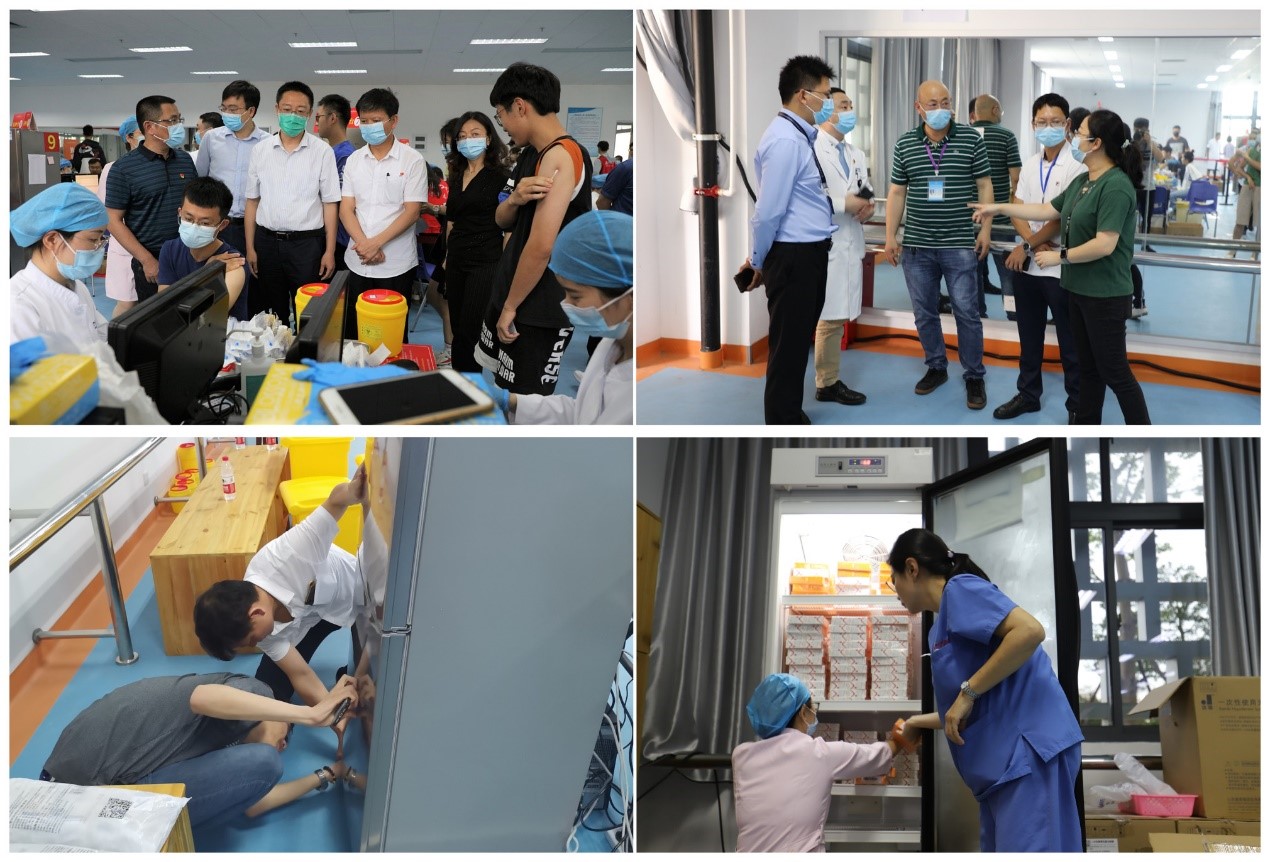 连日来,在翔安区委、区政府的大力支持下,翔安区卫健局孙进兴副局长、疾控中心苏辉耀主任提前多次周密部署,组织厦门大学附属翔安医院等单位协助翔安校区管委会完善场地布置、信息系统调试及物资准备等工作,紧急筹备12000支疫苗,保障翔安校区接种需求。仅用1天时间,在校方和各相关单位努力下,将翔安校区爱秋体育馆打造成为高标准、规范化的新冠疫苗临时接种点。翔安校区疫苗接种工作得到各级领导的关心支持,厦门市卫健委副主任陈长荣,厦门市疾控中心副主任荣飚,厦门大学校长助理、翔安校区管委会主任陈光,翔安校区管委会副主任黄宇霞,厦门大学医管办主任、附属翔安医院党委书记张建安,附属翔安医院执行院长张国君等前往疫苗接种现场指导工作,关心慰问一线工作人员,充分肯定翔安校区疫苗接种工作高效有序、流程规范、成效明显,要求各单位继续加强统筹协调,精心组织安排,实时掌握动态数据,科学预判情况,认真做好登记、接种、留观和应急处置等各项工作,扎实推动疫苗接种工作,维护师生生命安全和身体健康。