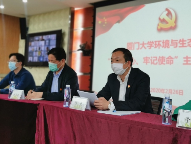 2月26日,厦门大学环境与生态学院“不忘初心、牢记使命”主题教育总结视频会召开。厦门大学“不忘初心、牢记使命”主题教育第七巡回指导组组长洪永强、副组长高斌,环境与生态学院主题教育领导小组成员、党政领导班子成员、党委委员、系主任、全体教职工党员、学生党支部书记和委员、离退休教师党员代表和非党员师生代表等120余人参加了会议。