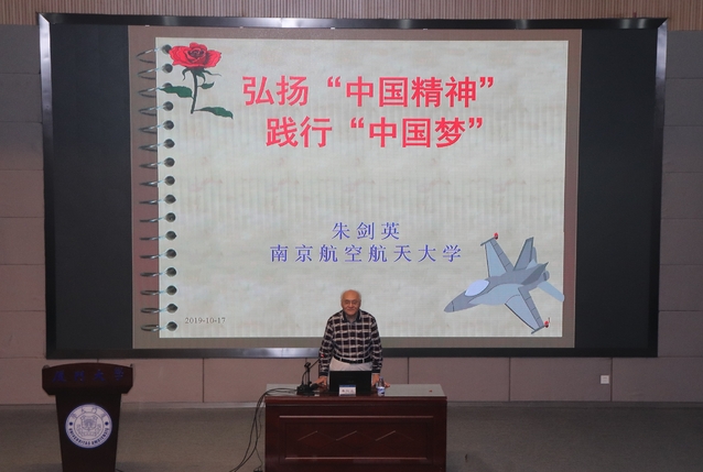 10月17日下午,航空航天学院“旗帜工程•党员学堂”系列活动之“弘扬中国精神•践行中国梦”主题讲座在德旺图书馆二号报告厅举行。南京航空航天大学原校长,国际生产工程科学院院士朱剑英教授担任主讲嘉宾。讲座由航空航天学院党委书记王康平主持,航空航天学院党委副书记郑镇锋、张晴,各教工党支部和学生党支部成员参加讲座。