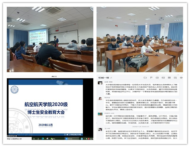 为增强和提高同学们的安全防范意识及能力,11月1日至8日,学院本、硕、博各班级围绕“国家安全、财产安全、消防安全、实验安全”四个主题开展安全教育主题班会。各班班长、安全委员采用线上、线下班会形式,通过贴近生活的事例,引导同学围绕四种安全问题的应对措施以及预防方案展开讨论和交流。2019级本科机械2班江昊烨表示:“希望同学们认真执行有关规定,自觉遵守校纪校规。当前随着网络、电信技术的日益飞速发展,一些不法分子借助网络、电信等媒介实施各种诈骗活动,打击和防范诈骗已成为全社会的共同话题。一方面,警方要重拳出击,打击不法活动,另一方面,作为大学生,我们要努力学习防范诈骗的基本知识,提高防范诈骗的能力,遇到实际问题,忌盲目、多思考,不要被某些假象所迷惑。”同学们在主题班会的交流中知识互补,完成了对国家安全知识、个人财产安全知识、实验室消防安全知识、疫情防控知识等方面的学习和自我思考过程。