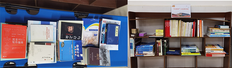 自倡议发出以来,毕业生党员带头捐赠,同学们积极响应,短短几天共收到捐赠书籍百余本,其中包括红色书籍、专业教辅和课余读物。经过精心挑选和分类整理,党支部在学生工作室的一角建立了“传帮带”公益图书角,开放给全体学生免费借阅。