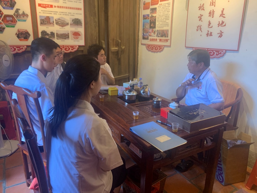 当天下午,队员们还前往位于内坑镇亭顶村的重要革命遗址“红色粮仓”进行调研。这是当年先烈从事革命斗争的物资储备中心,对晋江乃至整个大泉州的解放都起着关键作用。如今,经过修缮保护,这里已经成为留存红色记忆,传承革命精神的爱国主义教育基地。亭顶老年人协会会长曾火炎是“红色粮仓”讲解员,他为实践队员们精彩地讲解了引人入胜的革命故事,娓娓道来“红色粮仓”的设立始末,以及亭顶村早年的地下革命活动历史,为队员们上了一堂生动有趣的红色党课。在听完曾火炎会长生动的讲解后,实践队员徐泽感概到,“红色粮仓于历史河流中助推解放的壮阔波澜,也使今天的我们更加深刻地明白:半丝半缕,恒念物力维艰。”