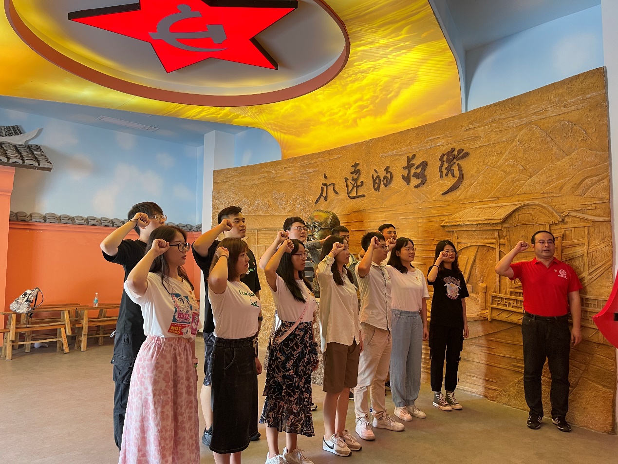 在何叔衡纪念馆,在乐无恙的带领下,全体同志面向党旗庄严宣誓,立志发扬闽西老区革命精神,赓续红色血脉,传承红色基因。