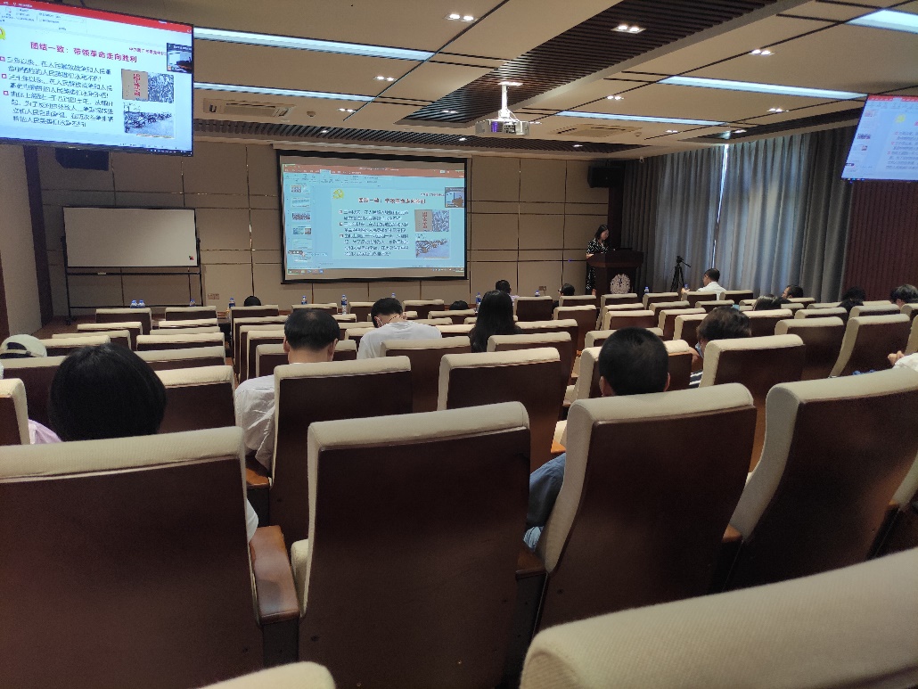 为深入学习贯彻习近平新时代中国特色社会主义思想,从党的百年伟大奋斗历程中汲取继续前进的智慧和力量,5月28日上午,医学与生命科学学部于成义楼102报告厅开展党史学习教育专题辅导报告会。本次报告会邀请了厦门市委党校党史党建教研部主任牛君教授,报告主题为《百年风雨话沧桑——中国共产党百年奋斗历程与启示》。医学院、生命科学学院、公共卫生学院、翔安医院党政班子成员和师生支部书记参与本次报告会。报告开设线上同步直播,师生党员线上参会。会议由医学院党委副书记何丽苹主持。