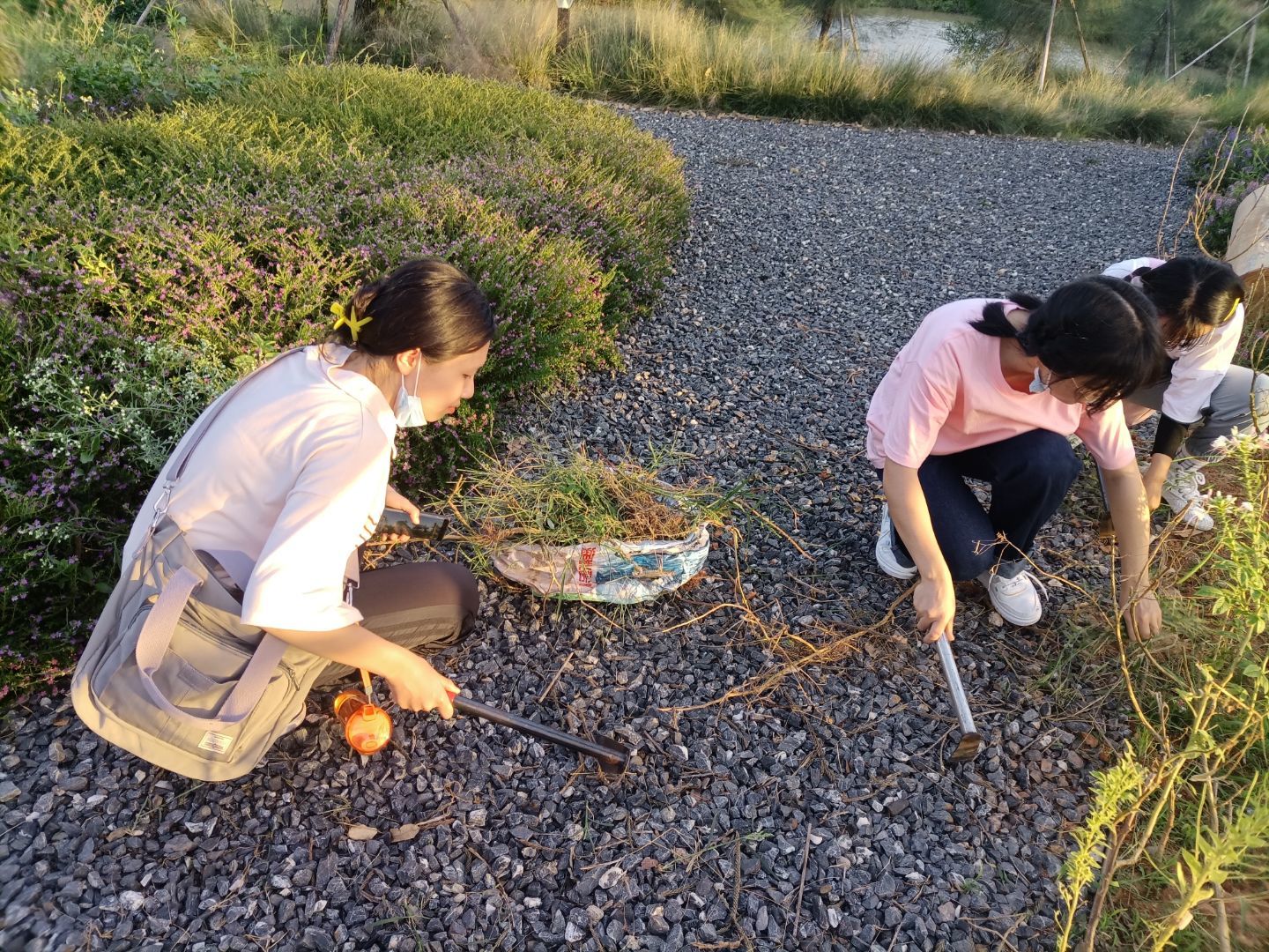“有些杂草用手拔效果会更好一点。”忙碌的身影在骄阳下闪耀,汗水中凝结的是同学们自强不息的精神。“来几个同学找下垃圾袋,我们清理战场。”结束后,大家看到那一堆堆杂草,成就感爆棚。