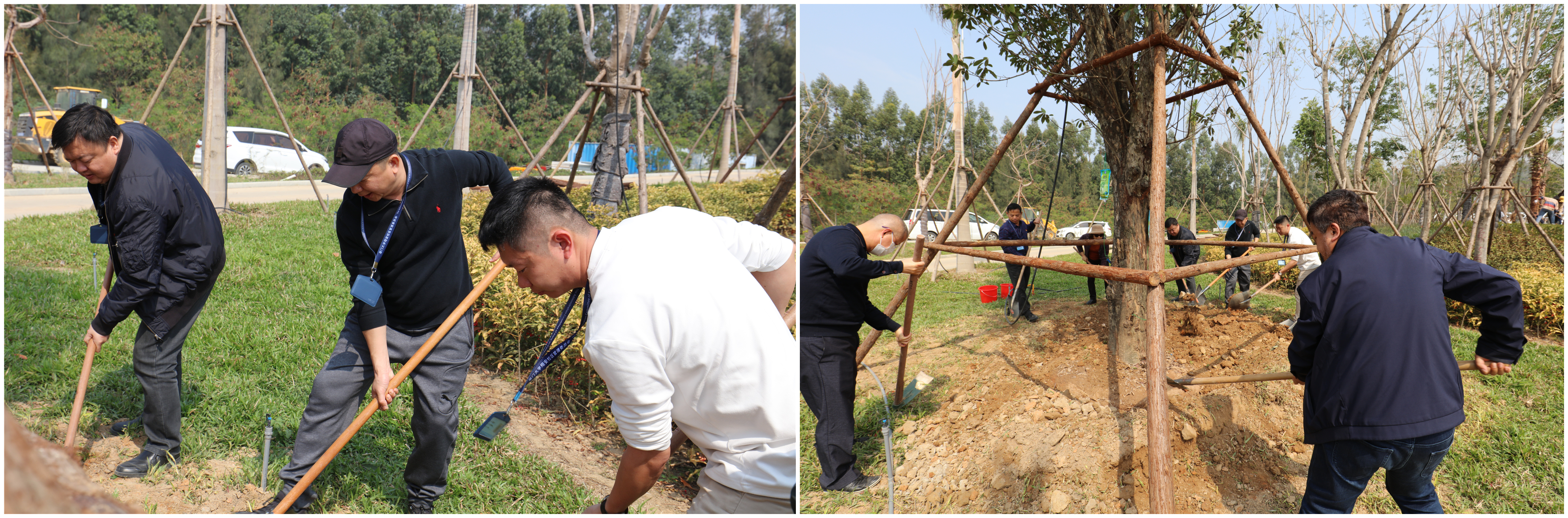 人勤春来早,植树正当时。3月12日上午,师生们来到八闽园,自发组队,拿起铁锹,你一锹他一铲地相互协作,培土围堰、提水浇灌,认真仔细栽种好每一颗树苗,现场热火朝天,一片繁忙景象。在师生们的密切协作下,一棵棵大树顺利落户八闽园。在和煦的春风中,新种的树苗挺拔有致,初发新芽生机勃勃。