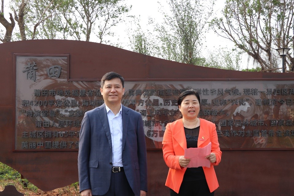 最后,一行人来到以莆田的文化信仰及知名人物为主题设计的莆田文化广场,李建辉热情的向师生们讲述了莆田历史名人陈洪进,组织围垦晋江南岸的滩涂,引九十九溪灌溉,创造一望无垠的“陈埭”故事,现场师生掌声连连,情绪高涨。借此机会,吴国瑛和李建辉呼吁同学们,走进莆田,了解莆田,为加强厦大与莆田的校地合作做出自己的贡献。