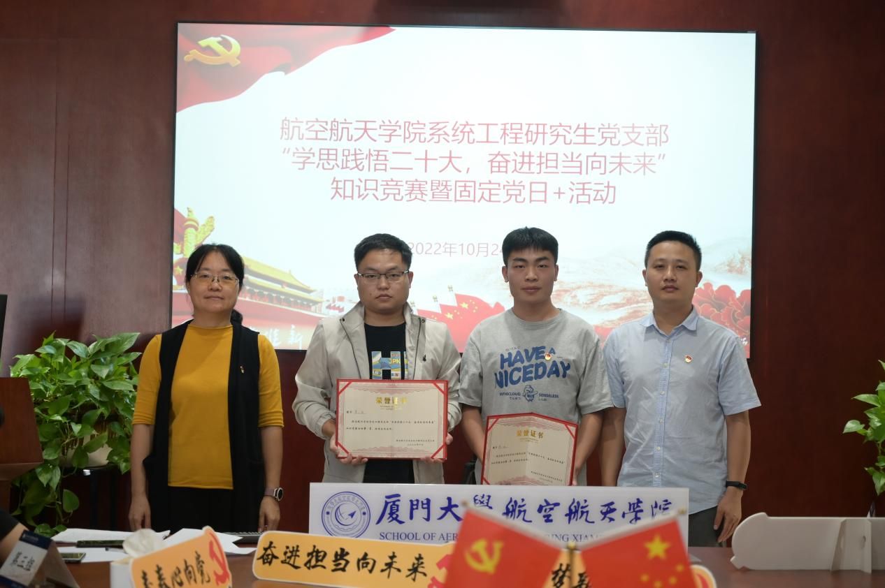 10月24日下午,航空航天学院系统工程研究生党支部于院楼501会议室开展学习党的二十大精神知识竞赛。学院党委书记王康平,党委副书记林蔚、王寒,团委副书记倪建超及系统工程研究生党支部党员参加活动。
