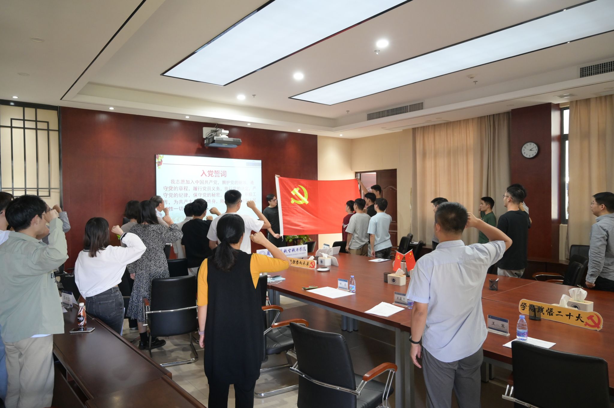 随后,在王康平书记带领下,在场全体党员共同重温入党誓词,铭记共产党员的身份,唤醒内心的责任感和使命感;永葆共产党员初心,增强全心全意为人民服务的宗旨意识;兑现共产党员的承诺,以实际行动回馈社会报效祖国。