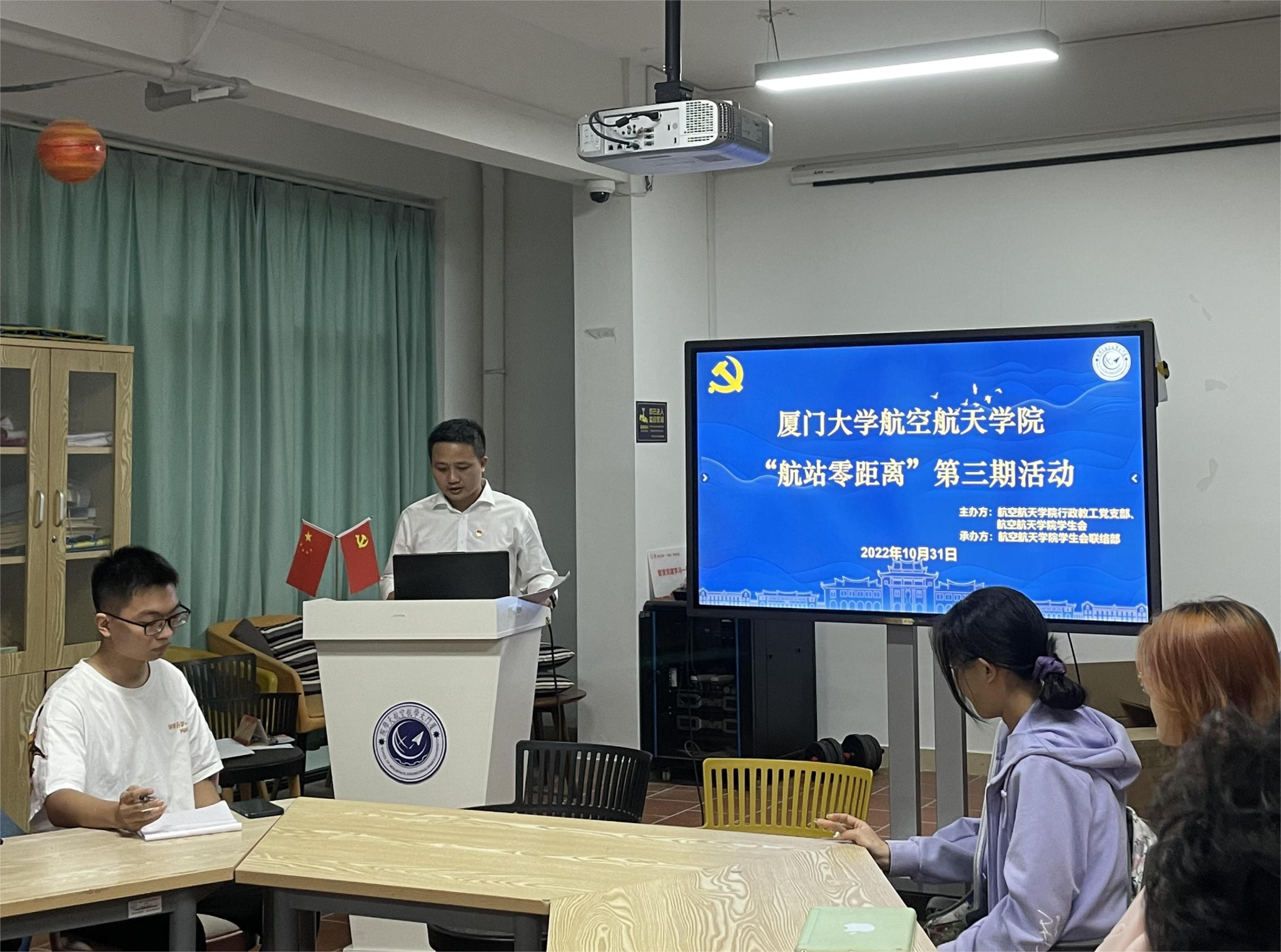 为学习宣传贯彻党的二十大精神,深入开展“我为师生办实事”实践活动,解决学生在学习成长方面所面临的困惑,10月31日下午,航空航天学院行政教工党支部联合院学生会在映雪园区“一站式”学生社区举办了第三期“航站零距离”活动,本次活动主题为“学思践悟二十大,倾听心声促成长”。学院党委副书记王寒,行政教工党支部副书记、团委书记沈鑫,“一站式”学生社区兼职辅导员欧阳智贤、蔡鹏程及30余名同学参加活动。