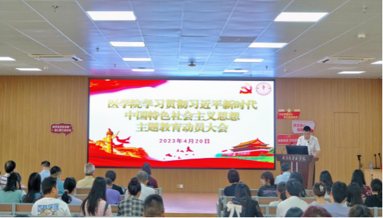 医学院党委副书记辛晓丹就主题教育进行了具体工作布置。她从主题教育的目标要求、着力解决的突出问题和工作安排等三个方面,结合学院实际对学院主题教育的整体实施方案作了说明。