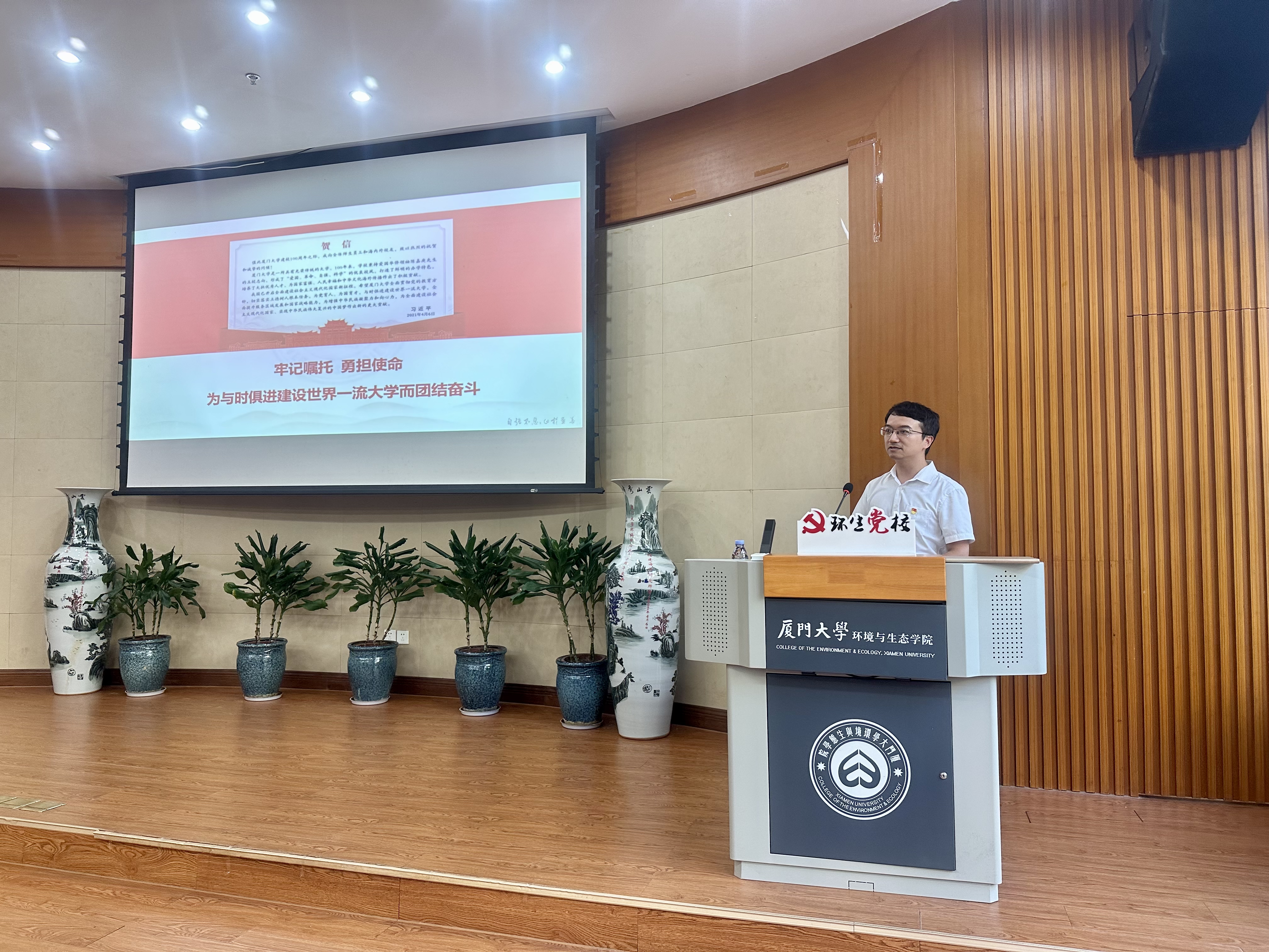 为深入学习贯彻学校第十二次党代会精神,深刻理解和准确把握党代会主题的科学内涵,10月30日下午,环境与生态学院邀请校党委政策研究室/发展规划办公室副主任陈智博于金泉楼B103报告厅作题为“厦门大学第十二次党代会精神学习体会”的主题讲座。学院党委委员和师生代表共130余人参加本次讲座。讲座由院党委副书记刘莉颖主持。